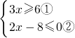 解不等式②得:x≤4,