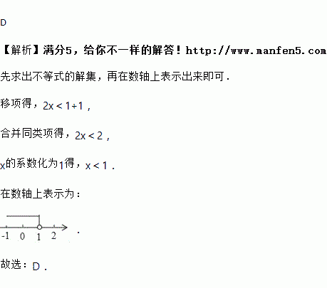 不等式2x﹣1<1的解集在数轴上表示正确的是( )