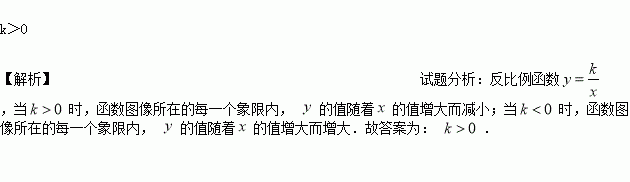 已知反比例函数y= (k≠0),如果在这个函数图象所在的每一个象限内,y的值随着x的值增大而减小,那么k的取值范围是________.