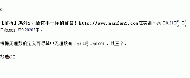 在实数﹣,0.21, , , ,0.20202中,无理数的个数为( )