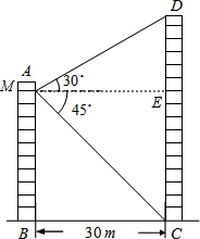 ∴DE=ME×tan30°=51×$\frac{\sqrt{3}}{3}$=17$\sqrt{3}$.