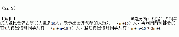 某校艺术班同学,每人都会弹钢琴或古筝,其中会弹钢琴的人数会比会弹古筝的人数多10人,两种都会的有7人.设会弹古筝的有m人,则该班同学共有_____人(用含有m的代数式表示)