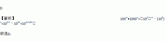 D 【解析】100m•1000n=(102)m·(103)n=102m·103n=102m+3n, 故选D.