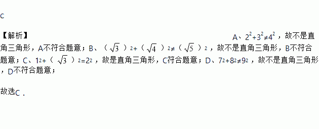 以下列各组数据中的三个数作为三角形的边长,其中能构成直角三角形的是( )