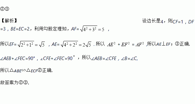 CD,下列结论:①∠BAE=30°;②△ABE∽△ECF;③AE⊥EF;④△ADF∽△ECF.其中正确结论是_____.(填序号)