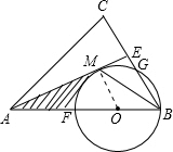 分析:(1)连接OM,由AB=AC,且E为BC中点,利用三线合一得到AE垂直于BC,再由OB=OM,利用等边对等角得到一对角相等,由已知角相等,等量代换得到一对内错角相等,利用内错角相等两直线平行得到OM与BC平行,可得出OM垂直于AE,即可得证;