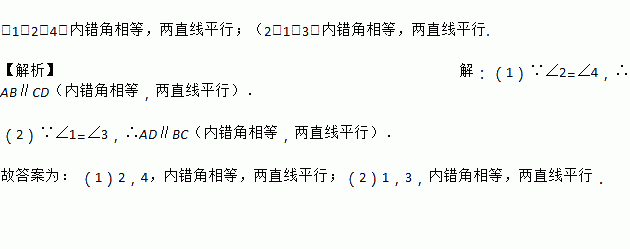 (2)要使AD∥BC,必须具备条件∠______=∠________,根据是____________________.