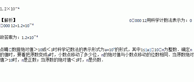 二生物教师在显微镜下发现,某种植物的细胞直径约为0.000 12 mm,用科学记数法表示这个数为_______________mm.