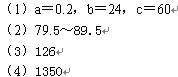 (2)上述学生成绩的中位数落在 组范围内;(2分)