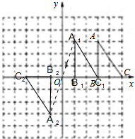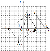 分析:(1)分别将各点向左平移两个单位,顺次连接后可得出△A1B1C1,然后根据题意的旋转角度为180°,旋转方向逆时针,旋转中心为点O可得出各点的对应点,顺次连接可得出△A2B2C2.