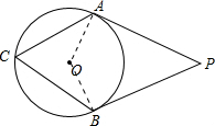 分析:连接OA、OB,由切线的性质和圆周角定理即可求出∠C的度数.