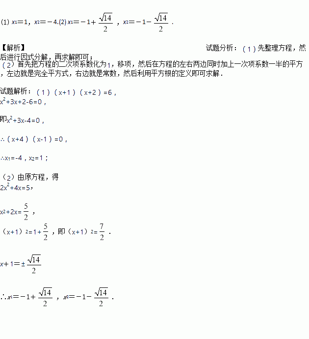 (1)选用合适的方法解方程:(x+1)(x+2)=6;