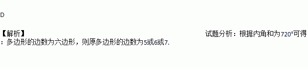 一个多边形截去一个角后,形成另一个多边形的内角和为720°,那么原多边形的边数为( )