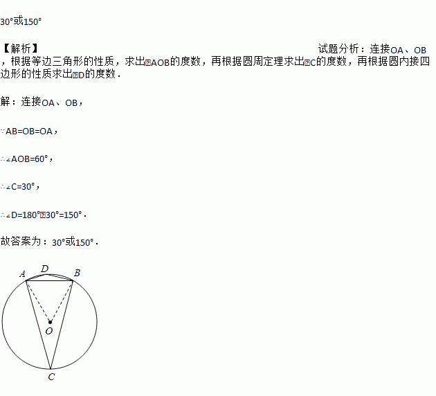直径为10cm的⊙O中,弦AB=5cm,则弦AB所对的圆周角是 .