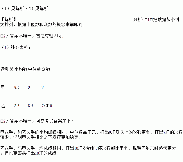 (2)根据上述图表运用所学统计知识对甲、乙两名运动员的射击水平进行评价并说明理由.
