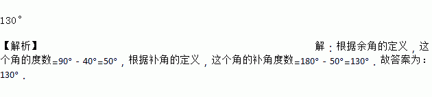 已知一个角的余角等于40度,则这个角的补角度数是______ .