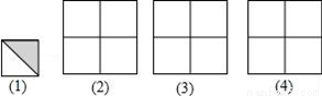 用如图(1)所示的瓷砖拼成一个正方形,使拼成的图案成轴对称图形,请你在图(2)、图(3)、图(4)中各画出一种拼法.(要求三种拼法各不相同,所画图案中的阴影部分用斜线表示)