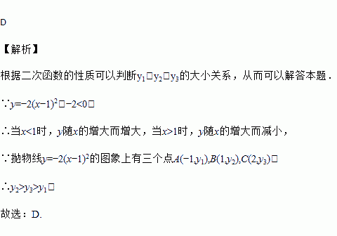 抛物线y=﹣2(x﹣1)2的图象上有三个点A(﹣1,y1),B(1,y2),C(2,y3),则y1,y2,y3的大小关系是( )