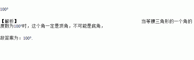 等腰三角形的一个角是100°,则它顶角的度数是______