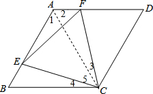 分析:(1)利用菱形的性质首先得出△ABC是等边三角形,进而得出△AFC≌△BEC,即可得出△EFC是等边三角形;