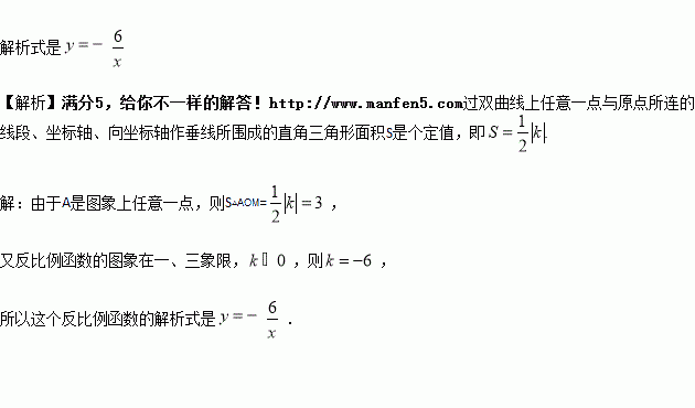 一个反比例函数在第二象限的图象如图所示,点A是图象上任意一点,AM⊥x轴,垂足为M,O是原点.如果△AOM的面积为3,求出这个反比例函数的解析式.