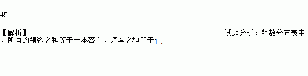 45 【解析】试题分析:频数分布表中,所有的频数之和等于样本容量,频率之和等于1.