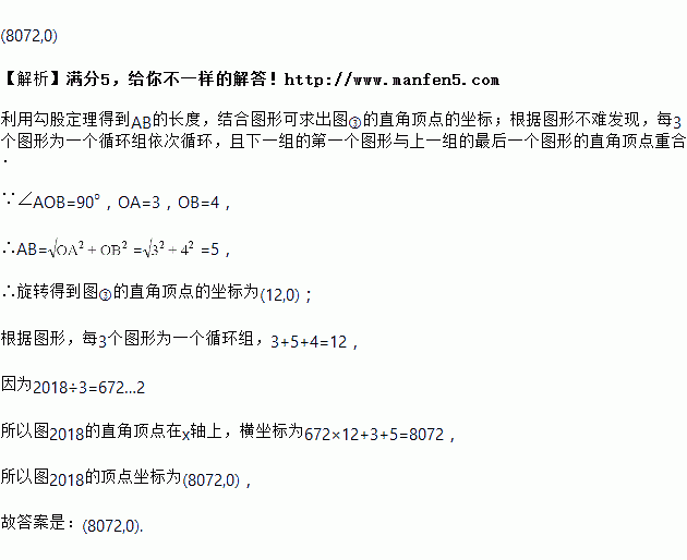 在中,,,,将沿轴依次以点、、为旋转中心顺时针旋转,分别得到图?、图②、…,则旋转得到的图2018的直角顶点的坐标为________.
