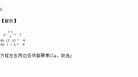 A. x-1-x=-1 B. 4x-1-x=-4 C. 4x-1+x=-4 D. 4x-1+x=-1