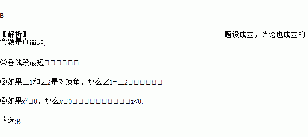 ③如果∠1和∠2是对顶角,那么∠1=∠2.④如果x2>0,那么x>0.