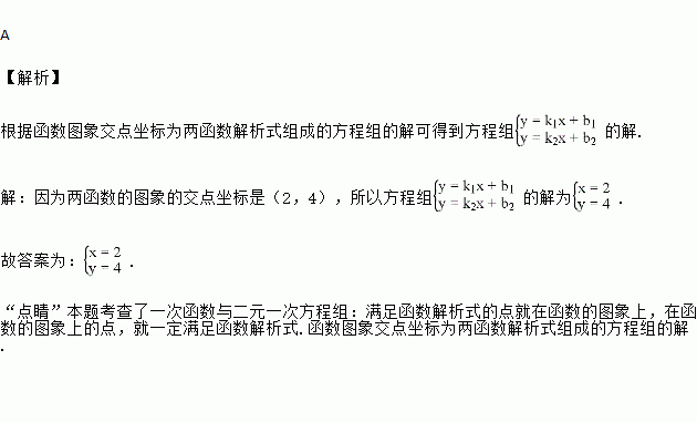 如图,两个一次函数图象的交点坐标为(2,4),则关于x,y的方程组的解为( )