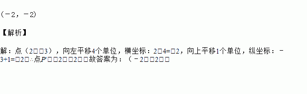 点P(2,-3)先向左平移4个单位长度,再向上平移1个单位长度,得到点P′的坐标是________.