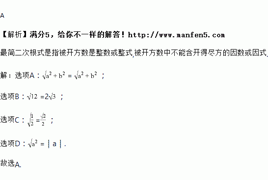 下列根式中属于最简二次根式的是( )