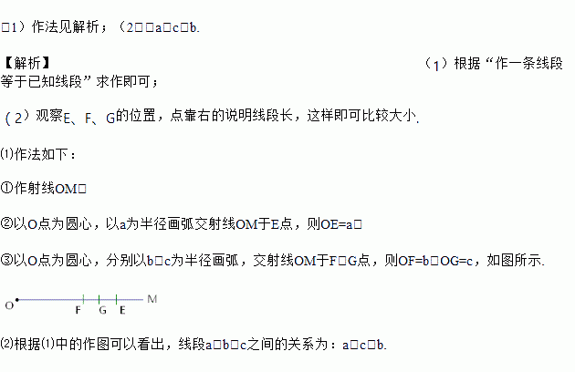⑴用圆规和直尺分别作OE=a,OF=b,OG=c.