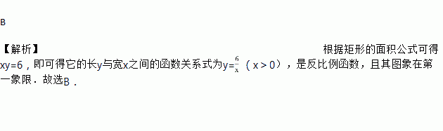 如果矩形的面积为6,那么它的长与宽的函数关系用图象表示为( )
