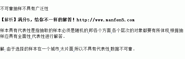 一家电脑生产厂家在某城市三个经销本厂产品的大商场调查,产品的销量占这三个大商场同类产品销量的40%,由此在广告中宣传,他们的产品在国内同类产品的销售量占40%.请你根据所学的统计知识,判断该宣传中的数据是否可靠:_______,理由是_____________.