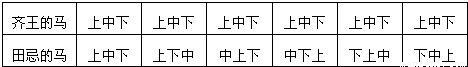 ½â´ð£º½â£º£¨1£©ÓÉÓÚÌï¼ÉµÄÉÏ¡¢ÖеÈÂí·Ö±ð±ÈÆëÍõµÄÖС¢ÏµÈÂíÇ¿£¬µ±ÆëÍõµÄÂí°´ÉÏ¡¢ÖС¢ÏÂ˳Ðò³öÕóʱ£¬Ìï¼ÉµÄÂí°´Ï¡¢ÉÏ¡¢ÖеÄ˳Ðò³öÕó£¬Ìï¼É²ÅÄÜȡʤ£»