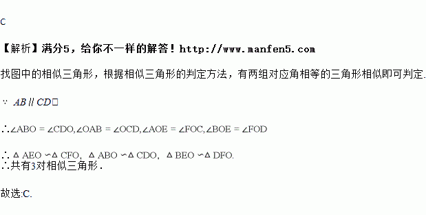 如图,AB∥CD,点E在AB上,点F在CD上,AC、BD、EF相交于点O,则图中相似三角形共有( )