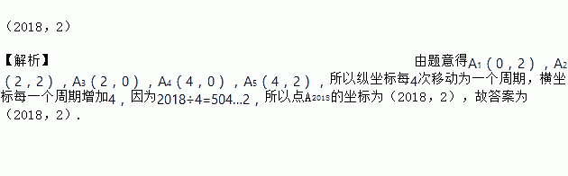 在平面直角坐标系中,一只蜗牛从原点O出发,按向上、向右、向下、向右的方向依次移动,每次移动2个单位长度,其行走路线如图所示,则点A2018的坐标为__________.