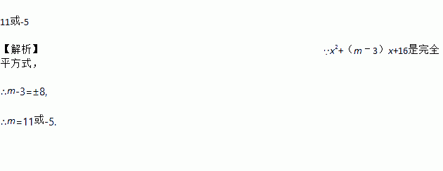 若x2+(m﹣3)x+16是完全平方式,则m=__________.