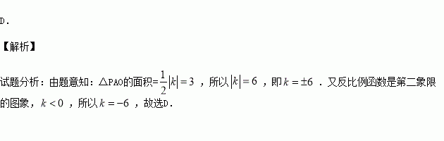 的图象上,PA⊥x轴于点A , △PAO的面积为3,则k的值为( )