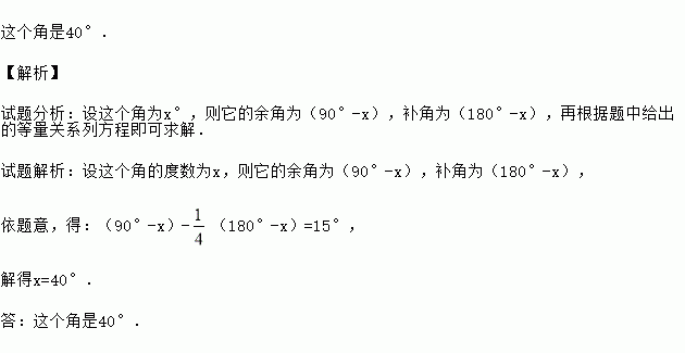 一个角的余角比它的补角的大15°,求这个角的度数.