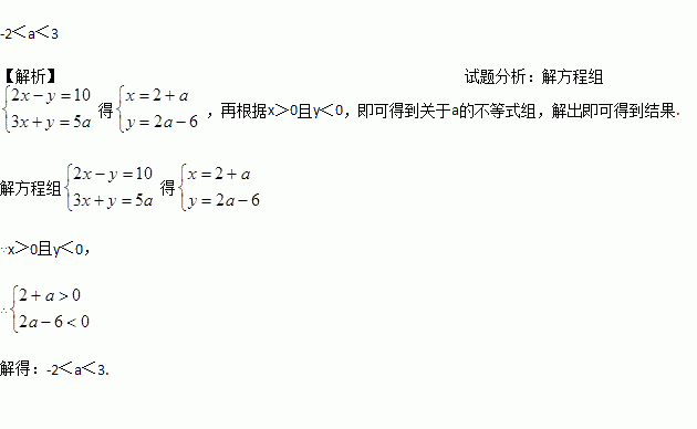 如果关于x、y的方程组的解满足x>0且y<0,请确定实数a的取值范围.