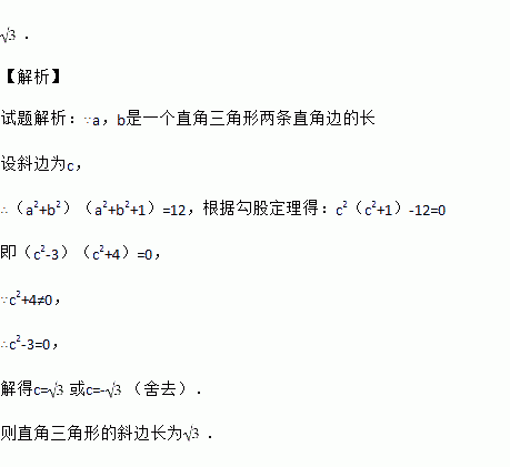 设a,b是一个直角三角形两条直角边的长,且(a2+b2)(a2+b2+1)=12,则这个直角三角形的斜边长为_____.