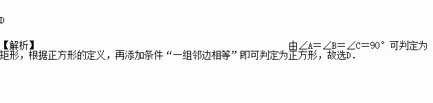 已知,在四边形ABCD中,∠A=∠B=∠C=90°,如果添加一个条件即可推出该四边形是正方形,那么这个条件可以是( )
