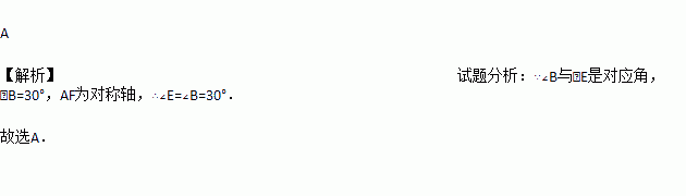 如图是一个风筝的图案,它是轴对称图形,量得∠B=30°, 则∠E的大小为( )