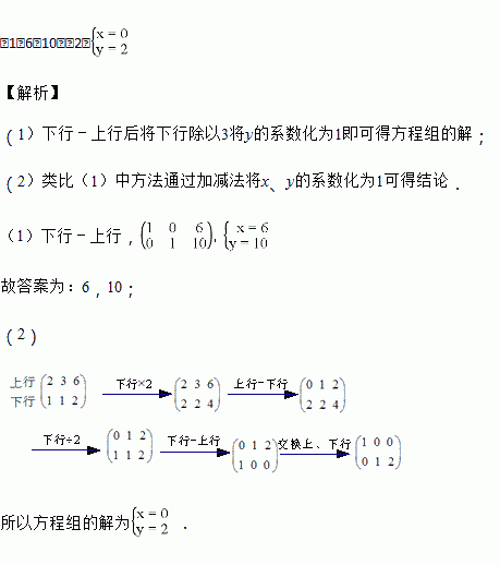.用数表可以简化表达解一次方程组的过程如下,请补全其中的空白: