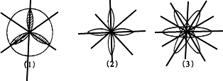 图形(1)中有_____条对称轴,图形(2)有_____条对称轴,图形(3)有_______条对称轴.