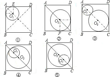 如图:已知正方形ABCD的对角线AC长为20cm,半径为1的⊙O1的圆心O1从A点出发以1cm/s的速度向C运动,半径为1的⊙O2的圆心O2从C点出发以2cm/s的速度向A运动且半径同时也以1cm/s的速度不断增大,两圆同时运动,当其中一个圆的圆心运动到AC的端点时,另一个圆也停止运动.![]()