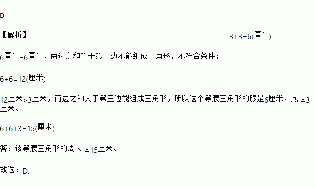 已知等腰三角形的两边长分别为6㎝、3㎝,则该等腰三角形的周长是( )