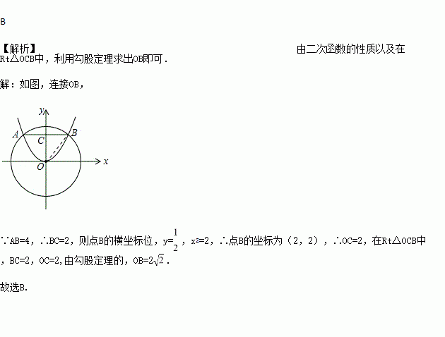 如图,⊙O被抛物线y=x2所截的弦长AB=4,则⊙O的半径为( )